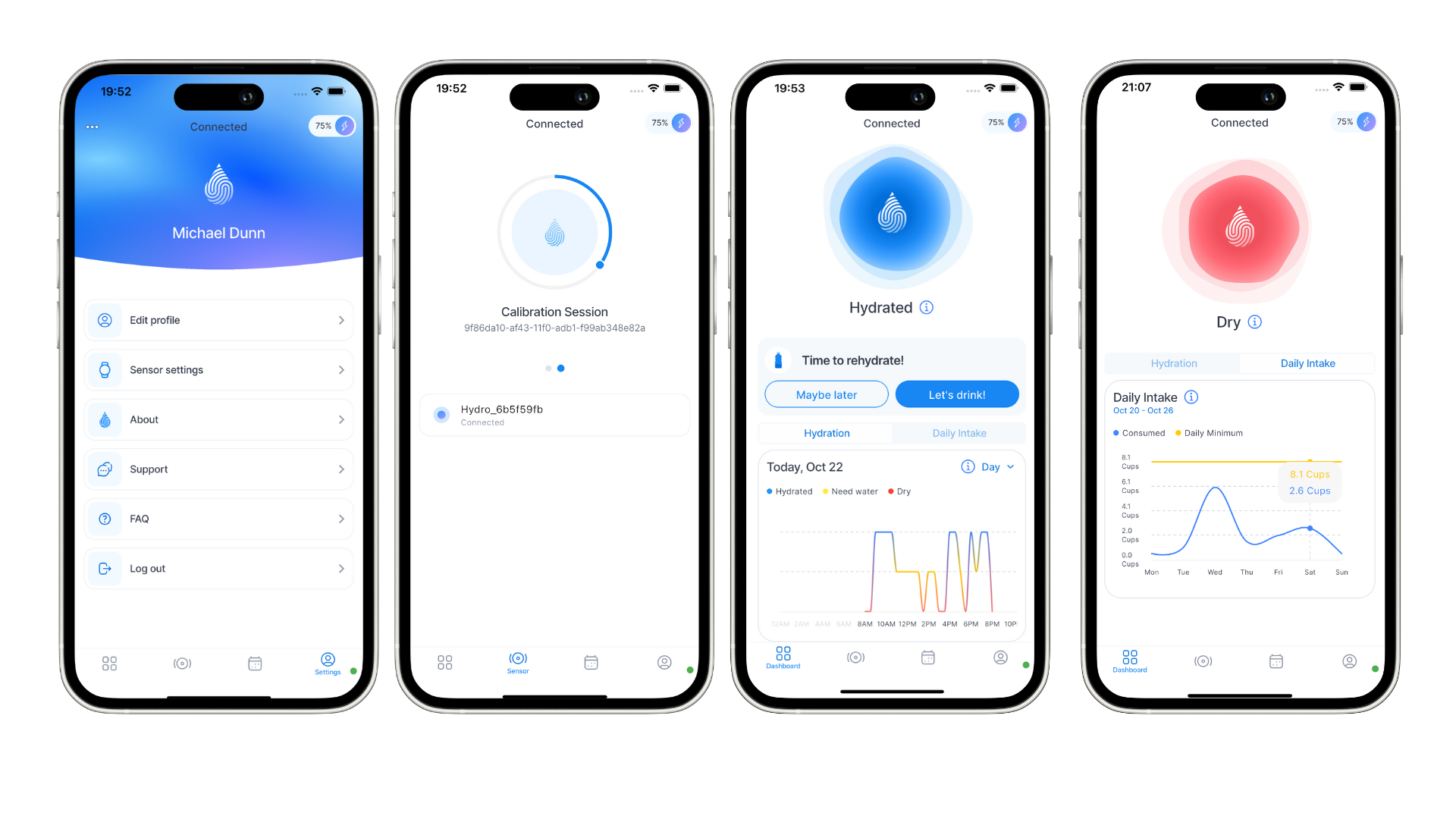 The Gecaᵀᴹ watch 2.0 is a hydration wearable that uses light to detect hydration inside your skin and a mobile App connected to Gecaᵀᴹ watch that tells you how much water to drink and allows you to track how much you actually drink.